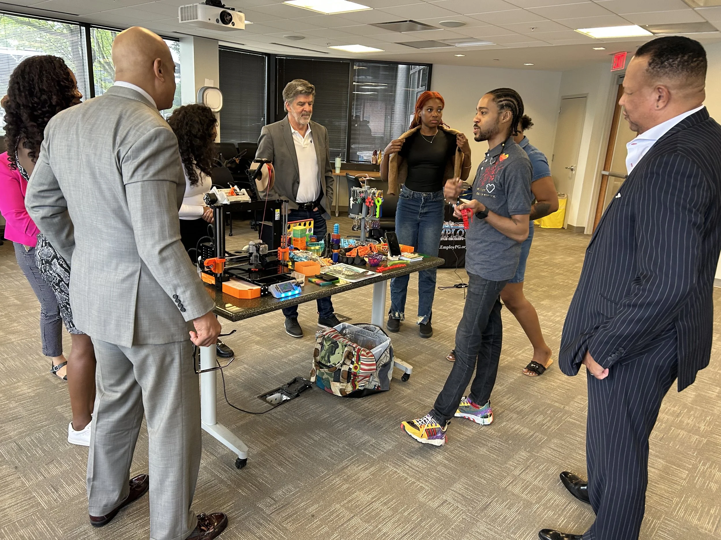 Hands-on, facilitated environments where participants build, prototype, and explore entrepreneurship through art, design, and creative technology.